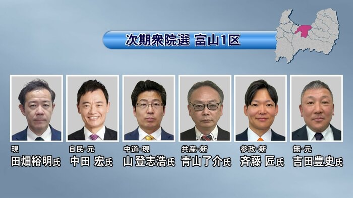富山1区では、自民分裂選が確実な情勢となり、合計6人が出馬する見通しだ。