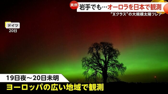 19日夜から20日未明にかけてドイツ、フランスなどヨーロッパの広い地域でオーロラが観測された。