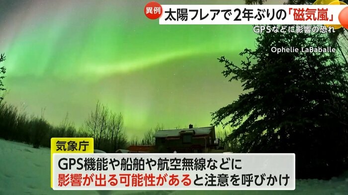 一方で、気象庁は今回の太陽フレアの影響により、約2年ぶりに「磁気嵐」を観測したと発表した。