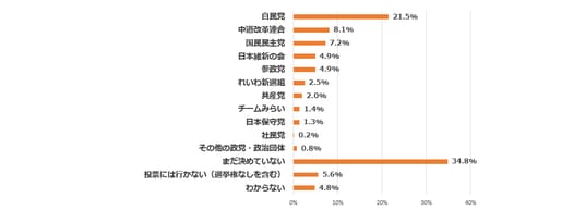 - 前回同時期比でそれぞれ自民9ポイント、国民3ポイント、参政4ポイント増 -
