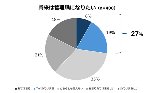 - 「管理職になりたい」意向を持っている若手社員は27%