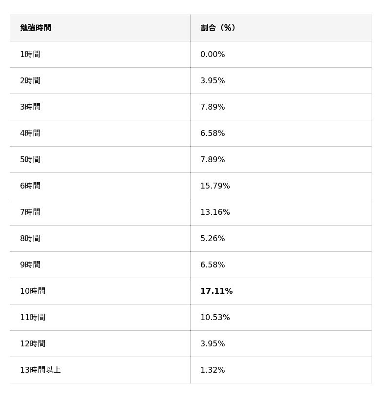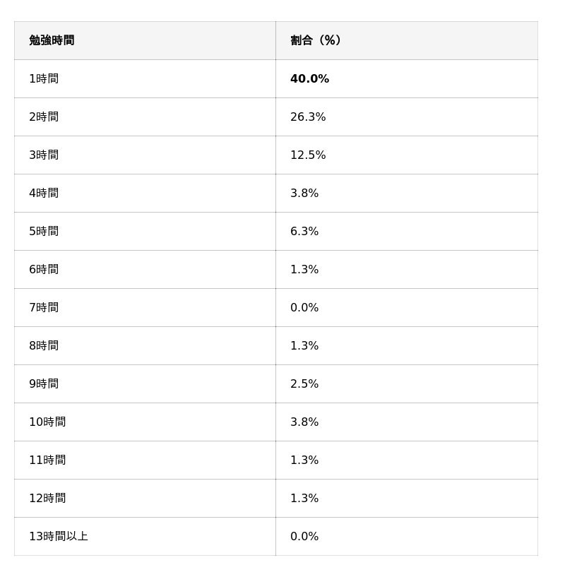 さらに衝撃的なのは、入会前の学習時間です。最多の40.0%が「1日1時間」と回答しており、3時間以下の層を合わせると全体の約8割(78.8%)に達していました。