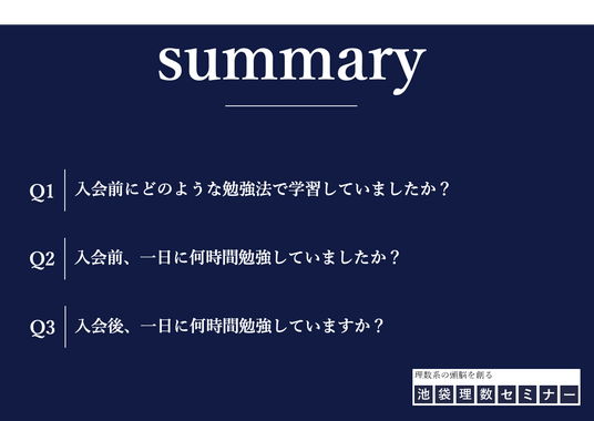 今回の調査で判明したのは、医学部合格に必要なのは「現在の学力」よりも、学習の質と量を根本から変える「環境の転換」であるということです。学校教材中心の1時間学習から、専門環境での高密度な10時間学習へ。池袋理数セミナーは、これからも生徒の「当たり前」の基準を引き上げ、数多くの逆転合格を創出してまいります。