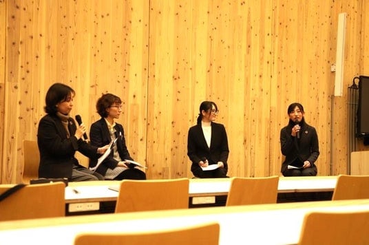 パネルディスカッションの様子(左からファシリテーターを務めた中村技術専門職員、盛さん、南條さん、宮本助教)
