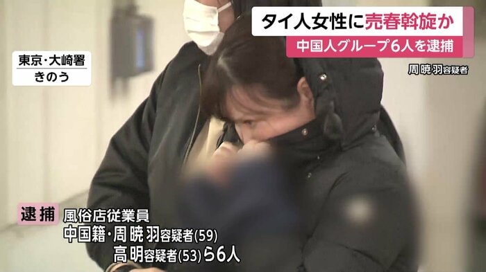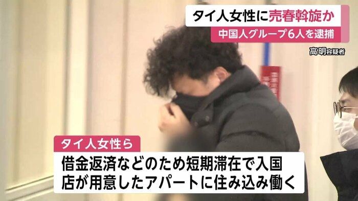 短期滞在で来日したタイ人女性を売春させるために斡旋した疑いで中国人グループの6人が逮捕された。