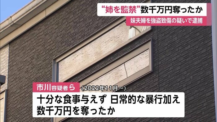 市川容疑者らは2022年11月から約5カ月にわたり姉を監禁し、食事も十分に与えず、日常的な暴行を加えたうえ数千万円を奪ったとみられている。