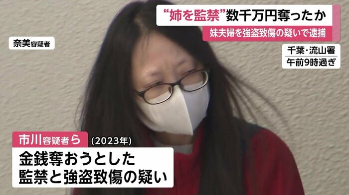 市川陽崇容疑者と妻の奈美容疑者は2023年、松戸市横須賀の自宅に奈美容疑者の姉を監禁し、腹を蹴るなどしてケガをさせたうえ、金銭を奪おうとした監禁と強盗致傷の疑いがもたれている。