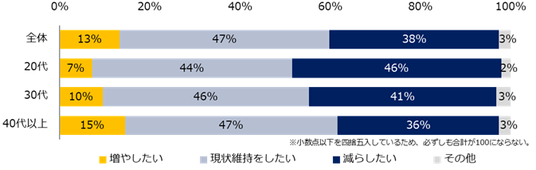 2:一方で、労働時間を「増やしたい」方は1割。半数が「現状維持」、約4割が「減らしたい」。(図4~5)