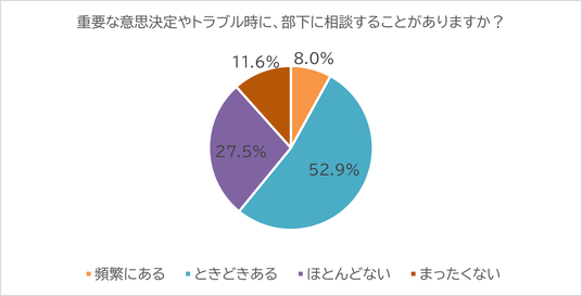 重要な意思決定やトラブル時に、部下に相談する上司は約6割