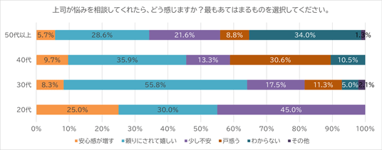 上司の悩み相談に対して、部下の約半数がポジティブに受け止め