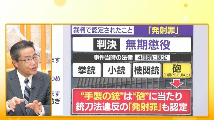 結局、裁判所はその点について詳細に順序立てて認定していて、発射罪の“砲”が今回の手製の銃には当たると。危険だし、これは発射罪が適応されておかしくないというのが、今回の判決です。