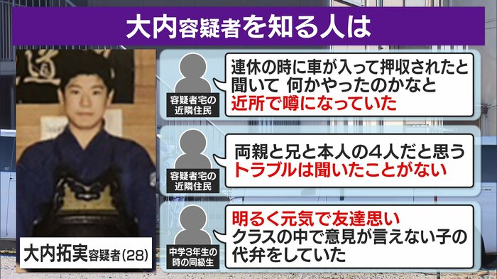 近隣住民は大内容疑者について…、