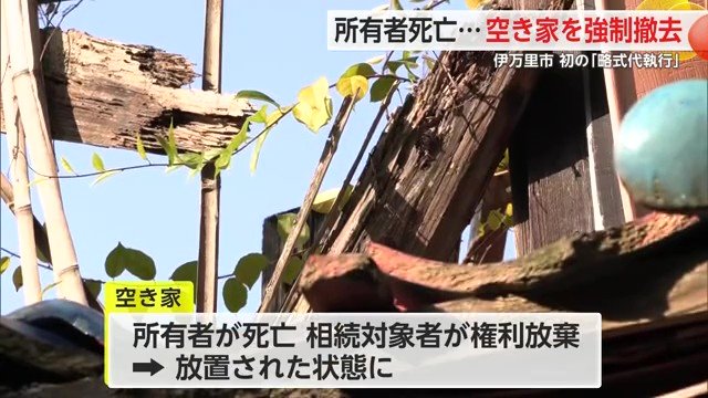 この空き家は所有者が死亡していて、相続対象者も権利を放棄したため放置された状態になっていた。