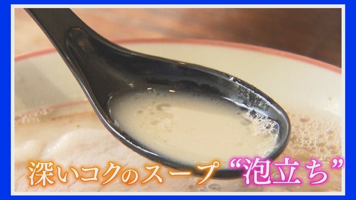 特徴は強火で煮込んだ深いコクのあるスープと、豚骨からじっくり脂が溶け出した証拠の“泡立ち”。この特徴を再現するため、約1年かけて粉末スープとオイルのバランスを調整したという。