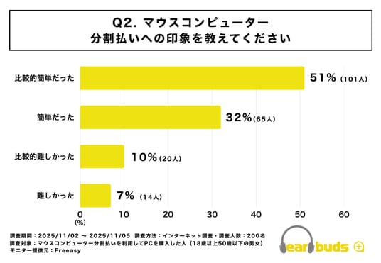 Q2:マウスコンピューターでの分割払いへの印象を教えてください(体感の難易度)