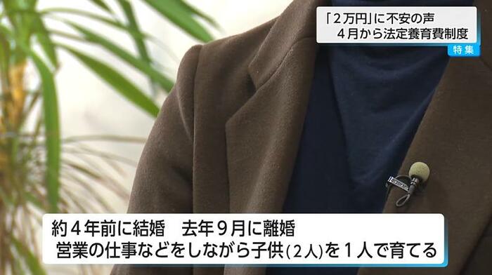女性は、元夫の借金や育児への非協力が離婚の経緯だと明かした。調停離婚で養育費の取り決めを行い、子ども1人当たり月2万3千円を受け取っているが、現在の生活費からすると「全然足りていない」という。
