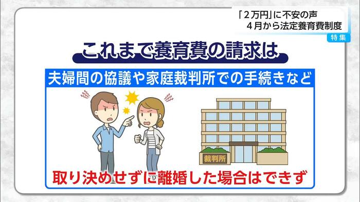 養育費の請求には夫婦間の協議や家庭裁判所での手続きなどが必要だった。このため、取り決めをせずに離婚した場合、養育費を受け取ることができなかった。女性も、「相手が出廷しなかったり、早く終わると思ったが半年ぐらいかかった」と話す。