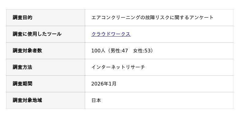 エアコンクリーニングの故障リスクに関するアンケート調査の概要