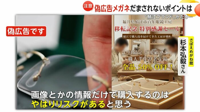 「さばえめがね館」にも、偽広告に関する問い合わせが22日だけで3件あったという。店では、メガネをネット通販で購入することのリスクを知っておいてほしいと呼びかけている。