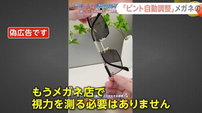 通販サイトを見ると1本9940円のメガネが半額の4970円で販売され、SNSにはこうした広告動画を信じて注文したという投稿が見られた。