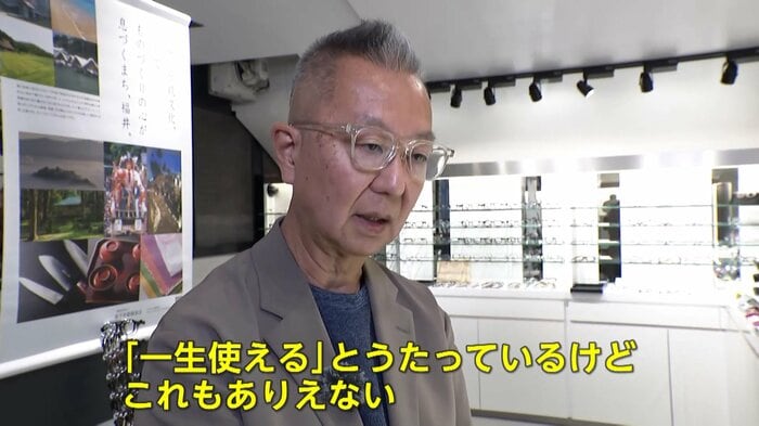 「一生使える」とうたっているけど、これもありえない。(鯖江では)自動で度数が変わるレンズは存在しないですし、視力を測らないでかけるメガネの提供もあり得ない。