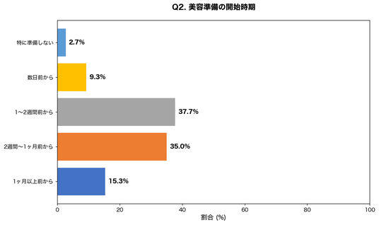 設問:イベント前の美容準備は、通常どのくらい前から始めますか?