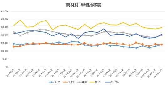 12月度の中古オフィス家具指数、年末需要で単価が上昇 ~空室率低下で「移転回避・運用最適化」が進展~