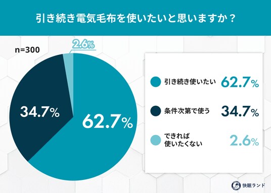 今回の調査から、電気毛布は多くの人にとって「手軽に暖かさを得られる便利な寝具」である一方、暑さや乾燥といった悩みも併せ持つアイテムであることが分かりました。大切なのは、強い暖かさを求めすぎず、予熱として使う、温度を下げるなど、自分に合った使い方を見つけることです。快眠ランドでは今後も、生活者のリアルな声をもとに、無理なく快適な睡眠環境づくりをサポートしてまいります。