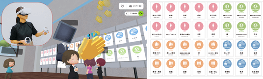 図3. メタバース空間内でのWell-being価値観共有ワークショップの実施イメージと使用したカード一覧