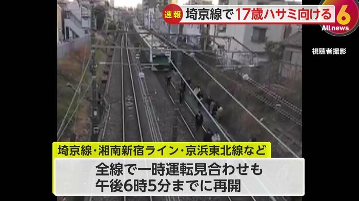 捜査関係者によると、17歳の少年が電車の9号車でハサミのようなものを乗客に向けたという。