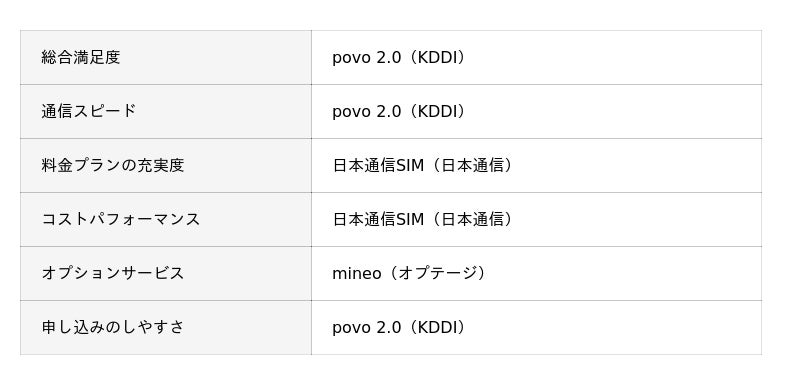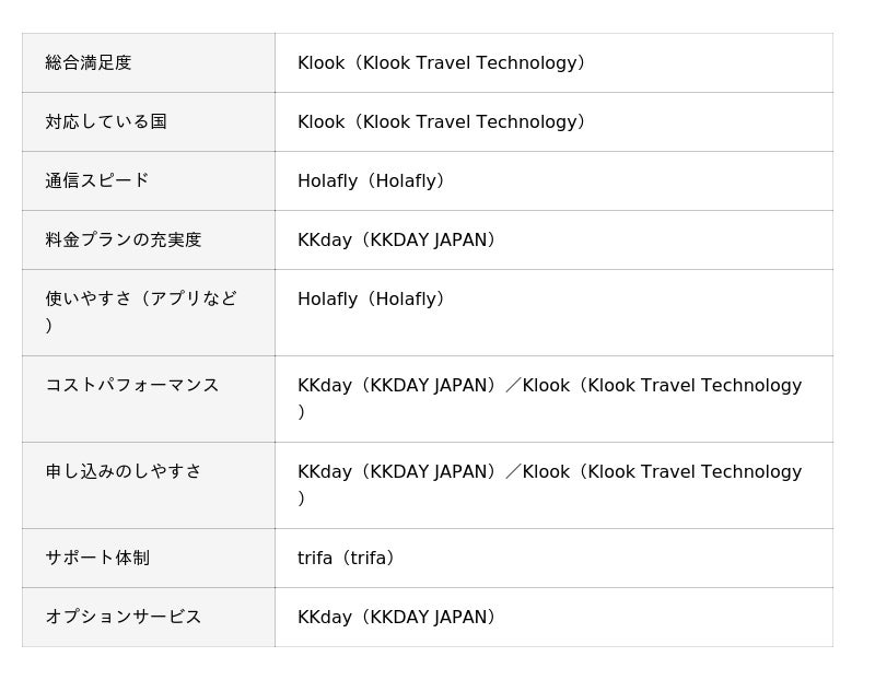 最近ますます利用が増えつつあるeSIMについては、「povo 2.0(KDDI)」が総合満足度1位に。海外eSIMではKlook(Klook Travel Technology)が最優秀を獲得しました。