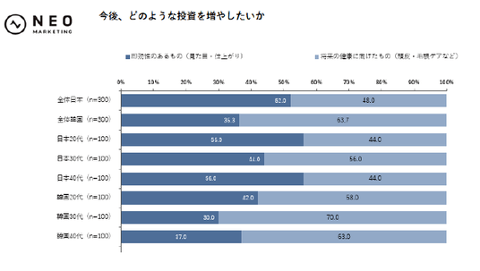 ■今後の投資先について、日本は「即効性」重視。韓国は「将来の健康」重視。