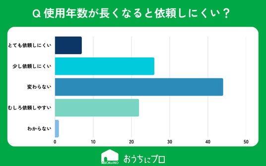 - 使用年数の長いエアコンのクリーニング依頼のしやすさ・しにくさについては意見が分かれている。