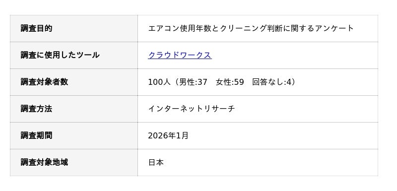 エアコン使用年数とクリーニング判断に関するアンケート調査の概要