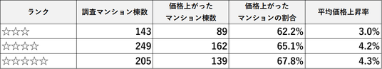 大阪府・京都府・兵庫県の分譲マンションを対象とした分析では、評価が最も高い「星5つ」のマンションの約7割で価格上昇が確認され、平均上昇率は4.3%に達しました。「星4つ」も同様に高水準の結果を示す一方、「星3つ」では価格上昇割合・上昇率ともに大きく低下しています。これらのデータは、「評価が高い」すなわち「管理状態が良好」であるほど、資産価値が維持・向上しやすいことを明確に示しています。