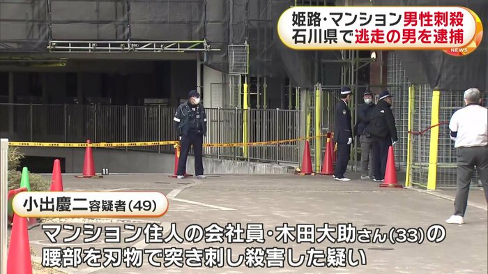 住所不詳で自称・自営業の小出慶二容疑者(49)は、1月20日午前8時ごろ、姫路市のマンションの地下駐車場で、住人の会社員・木田大助さん(33)に対し、刃物で腰部を突き刺して殺害した疑いが持たれている。