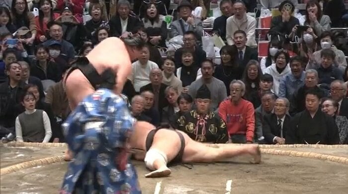 朝乃山は東前頭八枚目の正代と対戦し、正代の攻めに右膝から崩れ、肩透かしで敗れました。