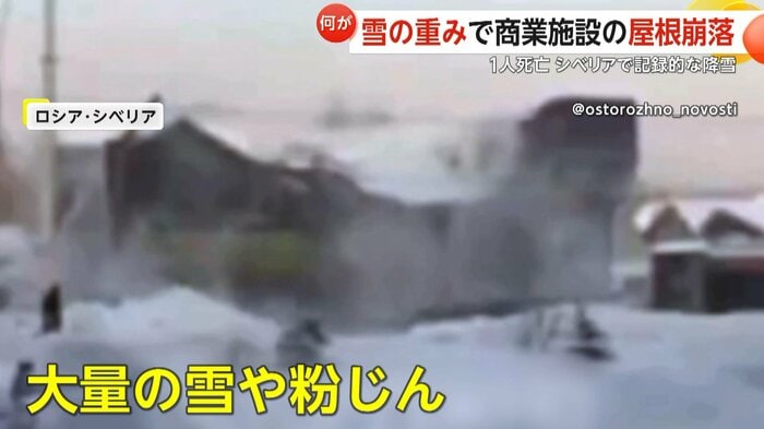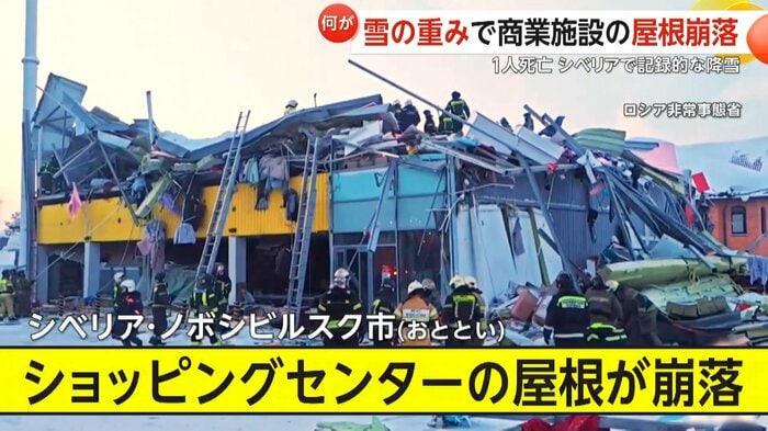 シベリア・ノボシビルスク市で21日、スーパーや衣料品店などが入るショッピングセンターの屋根が崩落する事故が発生。男性1人が死亡、女性2人がけがをした。