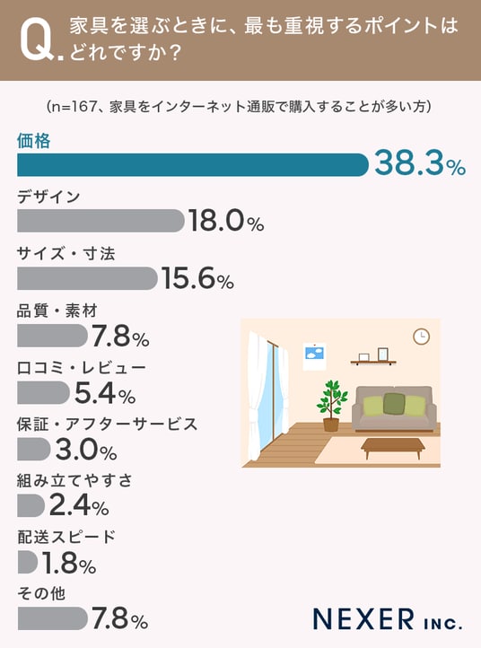■ネット通販利用者の38.3%が、家具選びで「価格」を最も重視