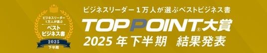 新刊ビジネス書情報誌『TOPPOINT(トップポイント)』を発行する、株式会社パーソナルブレーン(本社:京都市中京区、代表:橋本忠明)は、半年ごとに1万名超の定期購読者を対象とした読者アンケートを行い、「ベストビジネス書」に選ばれた書籍を「TOPPOINT大賞」として表彰しています。