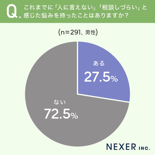 ■27.5%の男性が「人に言えない・相談しづらい悩みを持ったことがある」と回答