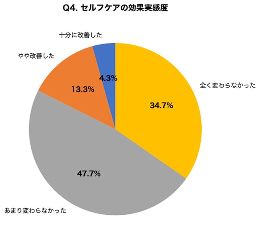 【調査結果】セルフケア経験者の82.4%が十分な効果を実感できず