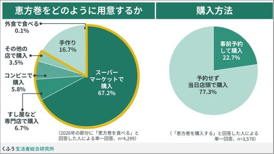 生活者と社会の生活満足度向上に資する研究・発信を行うくふう生活者総合研究所(以下、くふう総研)は、生活者6,773名を対象に「恵方巻」に関する調査を実施しました。
