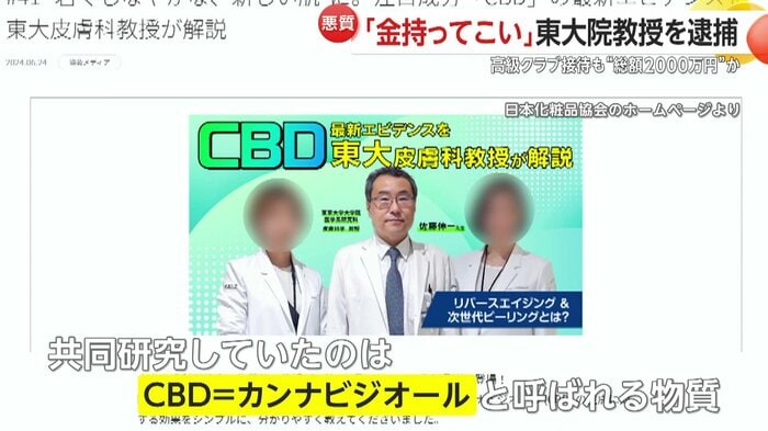 この物質を使った化粧品の販売を検討していた日本化粧品協会の代表理事が、権威を求めて佐藤容疑者と接触し、共同研究を要望したことから関係がスタートした。