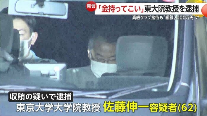 収賄の疑いで逮捕されたのは、東京大学大学院の教授で皮膚科医の佐藤伸一容疑者(62)。