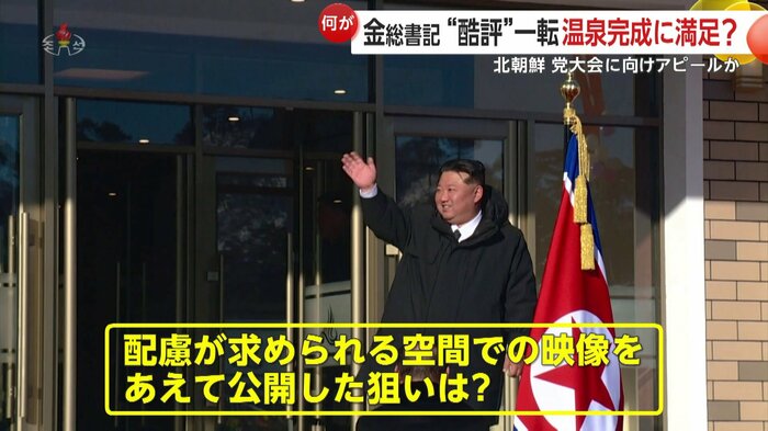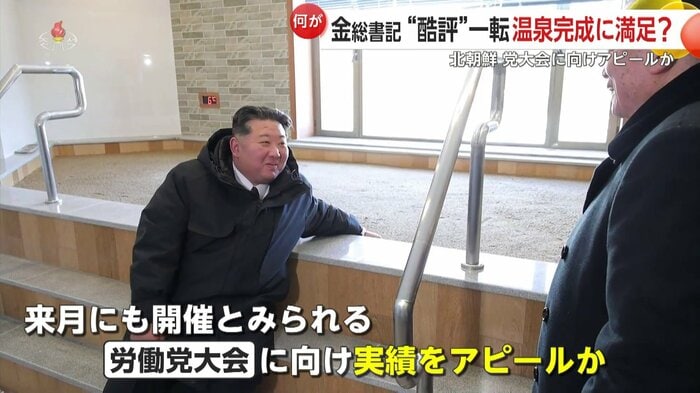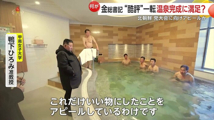 党大会では、この5年間の金総書記を中心とした朝鮮労働党の成果というものをアピールしなければいけないわけで、そのうちの1つが温泉施設でもあって、こういう人民のためを思う施設を金総書記の指示で、これだけ作っているんだとで。1回はダメ出しした施設だったんですけど、その後、改善してこれだけいい物にしたよっていうことをアピールしているわけです。