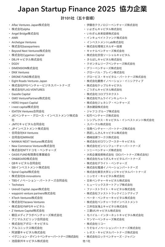 「スタートアップ育成5か年計画」が後半戦に突入し、社会実装への期待が一段と高まる中、本レポートが日本のスタートアップ業界の現在地を正しく示す一助となれば幸甚です。