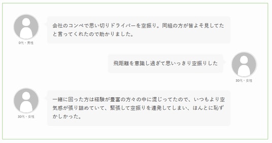 ポジティブな反応としては、「次はうまくやりたい」「笑い話として楽しめた」が合わせて約7割と、ゴルファーが失敗を前向きに捉える傾向が見られた一方で、ネガティブな反応も無視できない数値となっており、約4人に1人が失敗によって心理的な負担を感じている実態が明らかになりました。