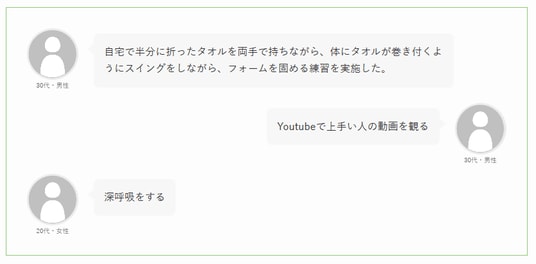 これらの声から、レッスンに通うだけでなく、自宅でのフォーム練習や動画学習、メンタル面での工夫など、多角的なアプローチで対策を講じていることが分かります。