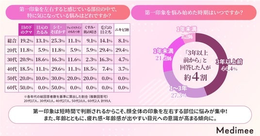 今回、Medimeeでは20代~60代の女性を対象に、第一印象に対する意識や悩み、実際に行っている改善行動、さらに美容医療への関心や検討タイミングについて調査を実施しました。